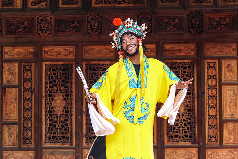 随后,罗斯又沉浸在了高家大院的阵阵秦腔声中,在历史的吟唱里,罗斯也不禁换上戏服,亲身感受文化魅力。