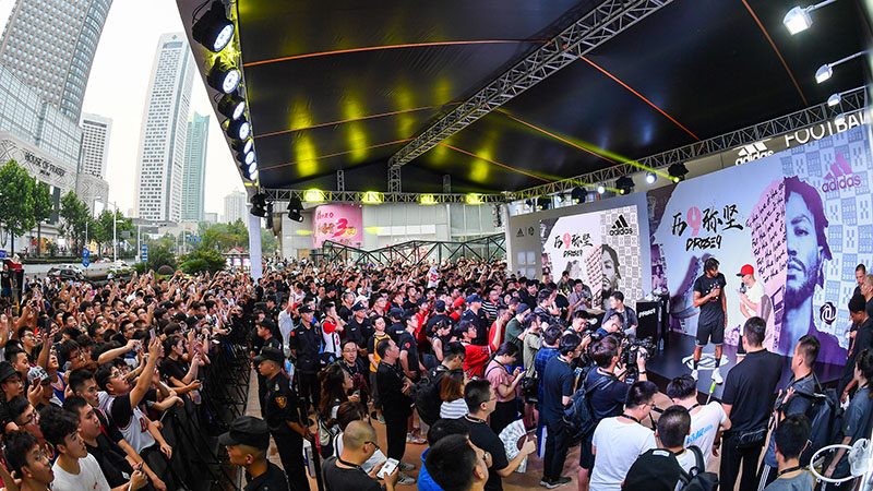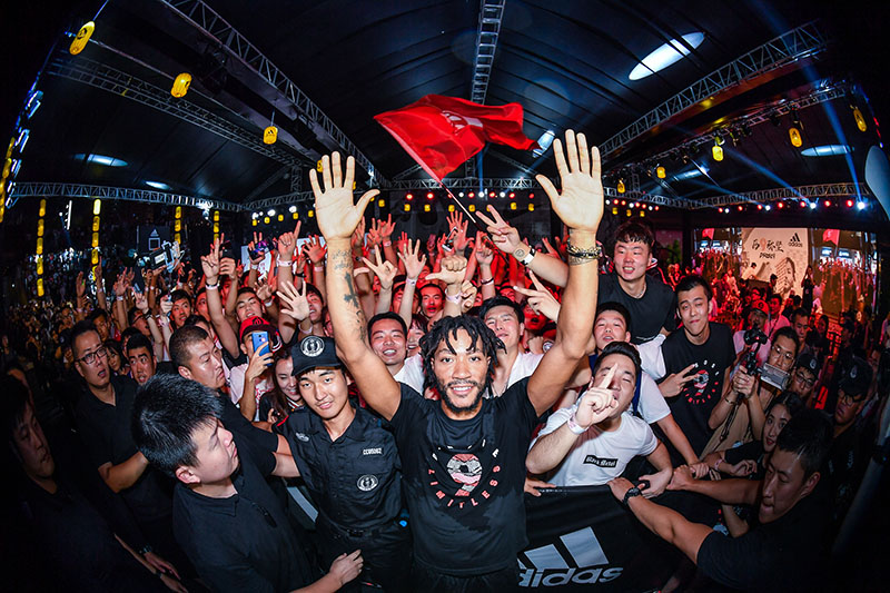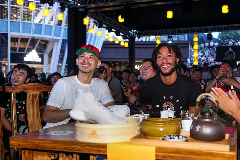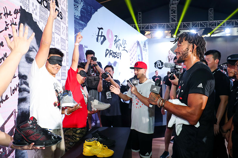 罗斯来到上海新天地太平桥公园 adidas #火拼# 决赛现场,向大家展示最新配色的 D Rose 9,adidas 还特意创作了 3 款 “罗斯 2018 中国行限定球星卡”。