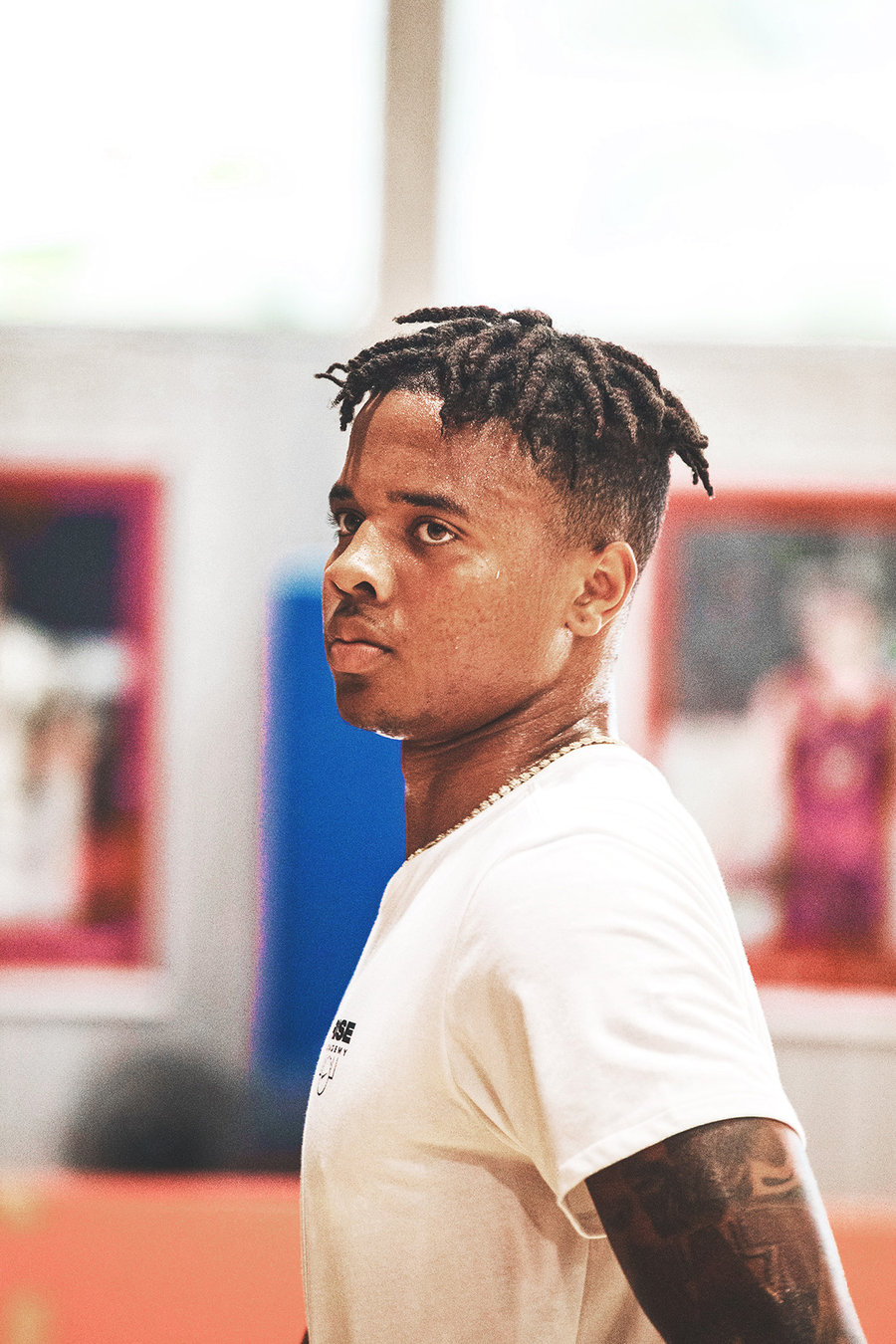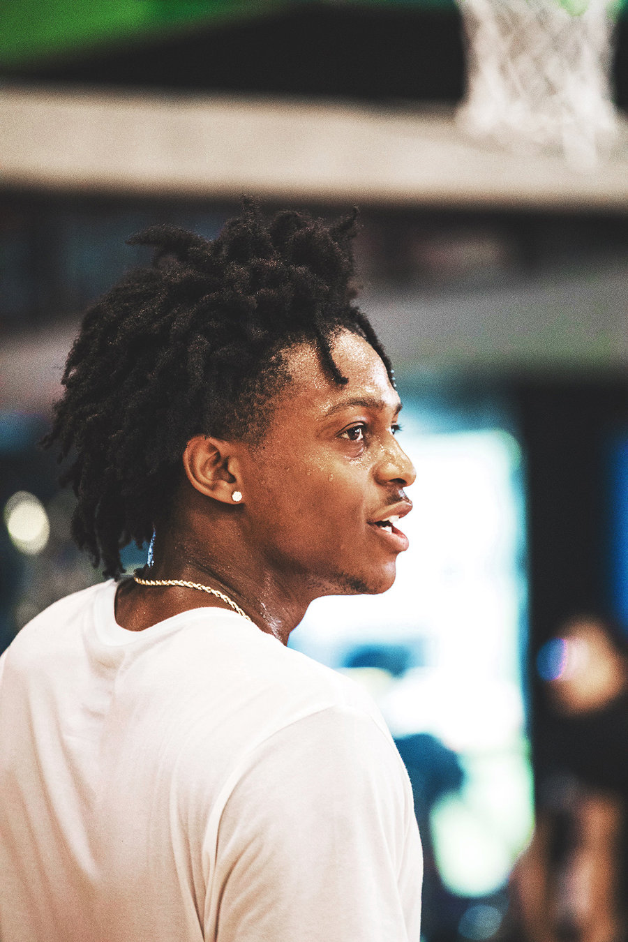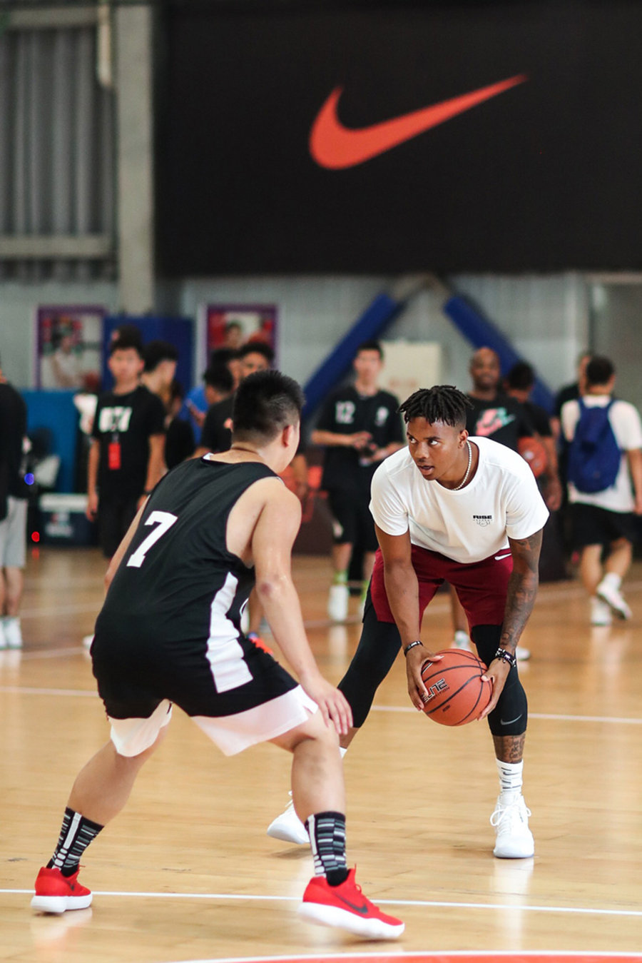 现场不仅悉心指导耐克高中篮球联赛的年轻球员们,更是亲自上场与球员上演一对一攻防对抗。