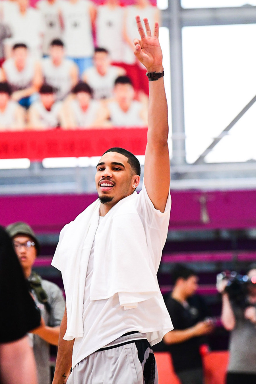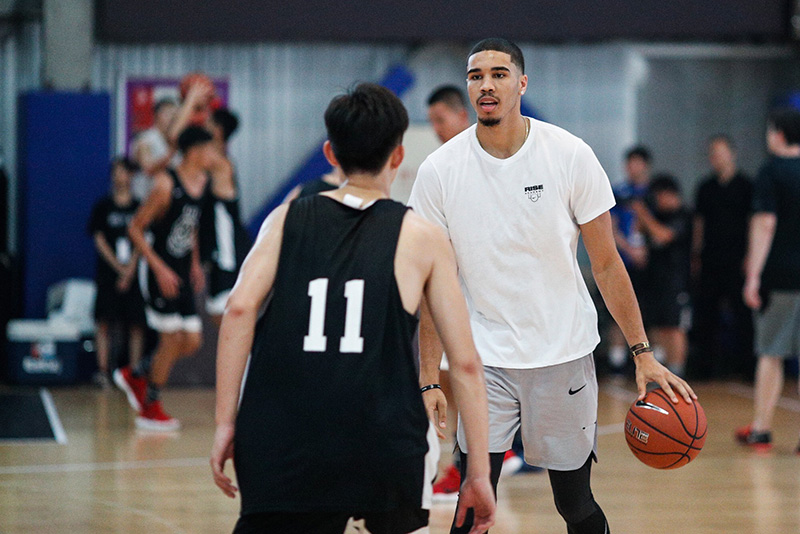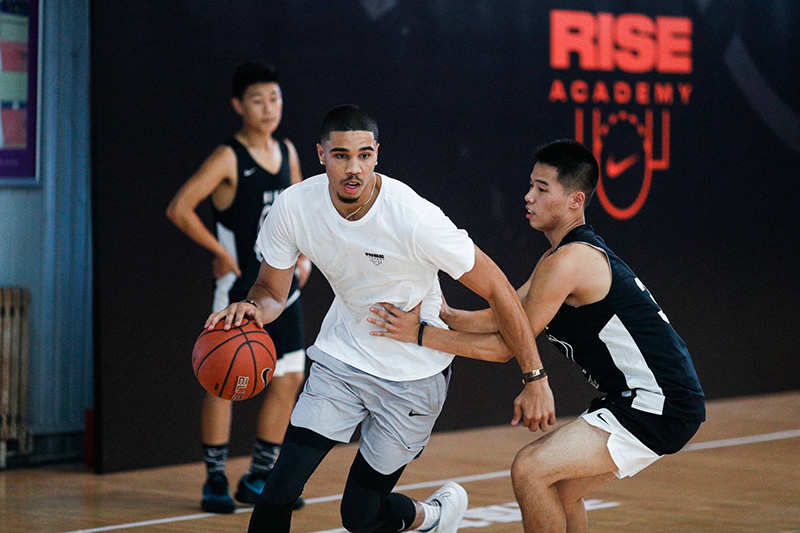 乐福、塔图姆、富尔茨、福克斯、马尔卡宁五人,最后还参加了在清华附中开展的耐克 RISE ACADEMY 训练营当中!