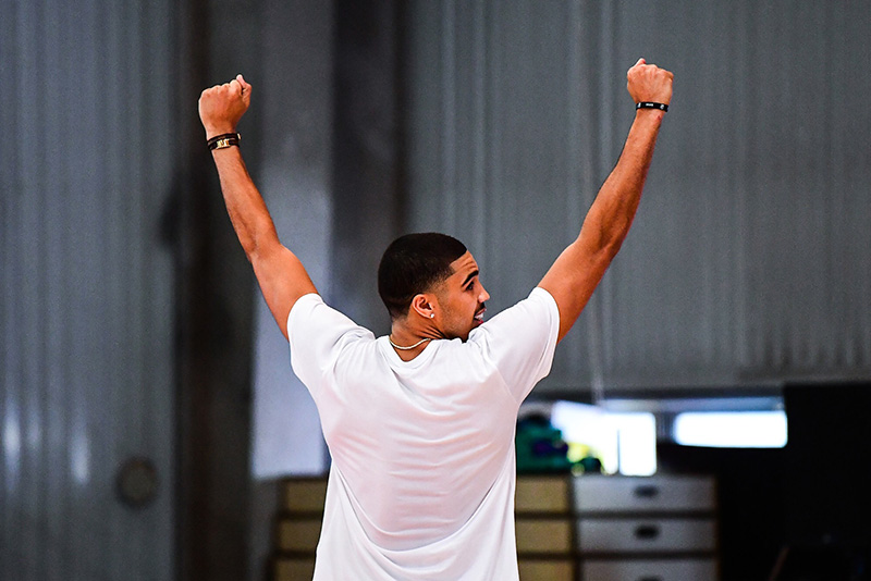在现场,塔图姆和马尔卡宁轮番上演了从单手劈扣到 360 度灌篮的精彩扣篮盛宴,更是引得现场阵阵惊呼。