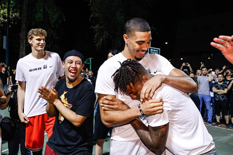 塔图姆、富尔茨以及马尔卡宁三位 NBA 球星在毫无征兆的情况下,傍晚突袭中国人民大学篮球场,与街头篮球手同场互动切磋,感受具有北京地域特色的街球文化。