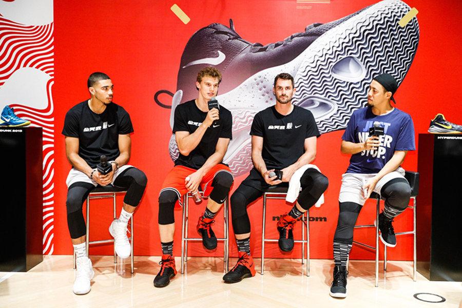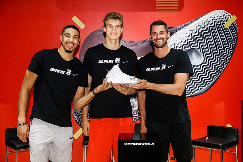 乐福、马尔卡宁与塔图姆亮相北京中关村欧美汇耐克及 JORDAN 篮球体验店,与 Hyperdunk 系列球鞋收藏家以及球迷们分享了他们与 Hyperdunk 系列共同成长的故事。