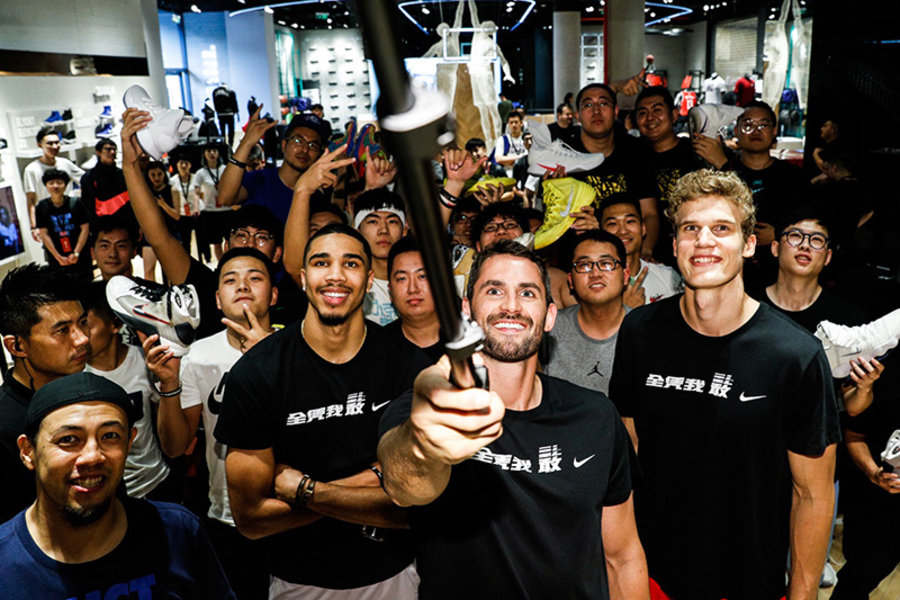 为了参加姚基金慈善赛,由凯文·乐福、杰森·塔图姆、马克尔·富尔茨、达龙·福克斯、劳里·马尔卡宁、加里·佩顿二世以及兰斯顿·莫里斯·沃克组成的耐克星锐队造访北京,开启了他们的 2018 耐克 “全凭我敢” 篮球之旅。