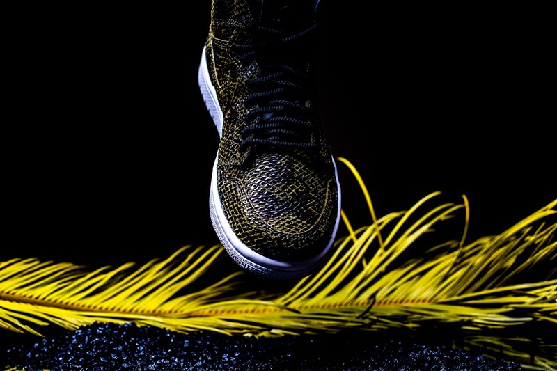 相比之前两双配色,此双黑黄蛇纹采用蛇纹皮革完全覆盖整个鞋身的方案,带来更为强烈的野性观感,颇有 Air Jordan 1 Pinnacle 巅峰蛇纹的神韵!蛇纹依旧具有非常优异的光泽感,呈现出闪耀夺目的视觉感受,搭配上虽有难度,但出街回头率可以有所保证!