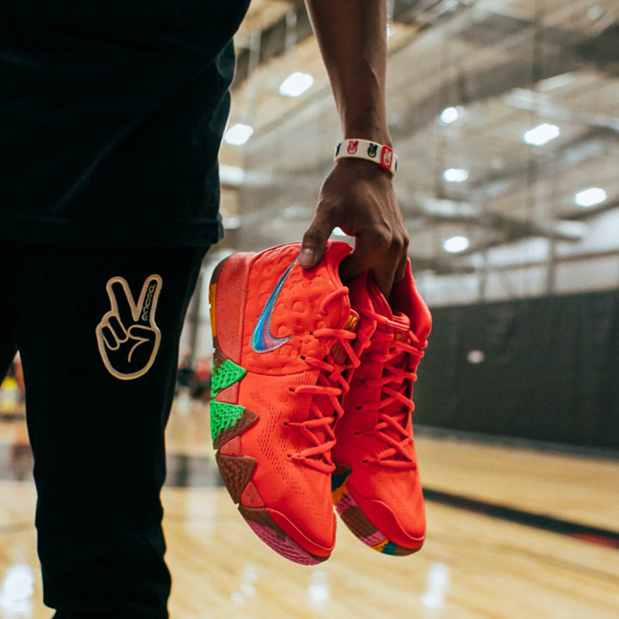以欧文喜爱的谷物早餐为灵感,Kyrie 4 推出了三款麦片主题配色,其中 “Lucky Charms” 最为花哨亮眼。该配色已于海外发售,带来实物上脚欣赏。