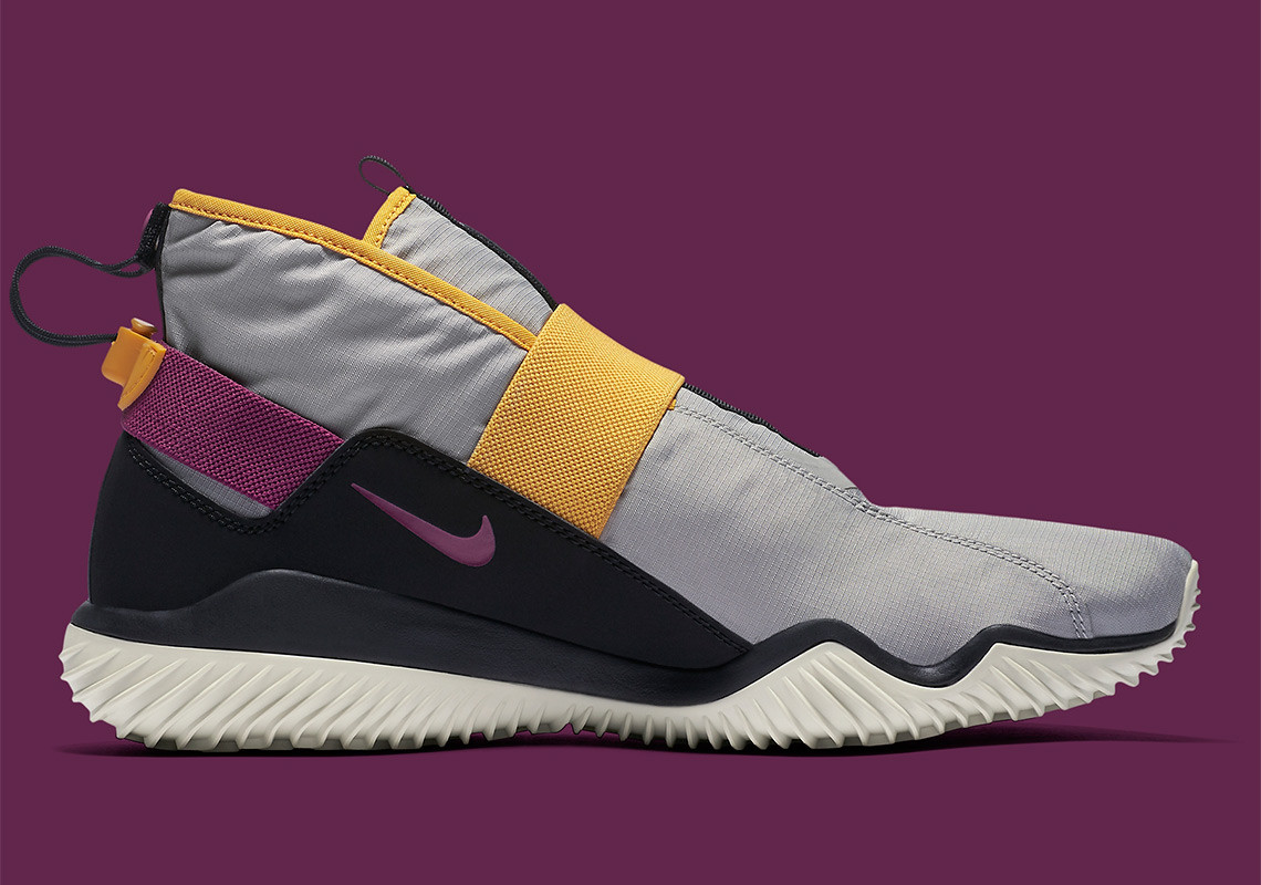 全新配色以浅灰色为主调,细节中加入紫、黄、黑三色提升辨识度,鞋身采用防水尼龙材质制作而成,并使用了全新的 Fidlock 磁力搭扣与后跟松紧索带的组合方式呈现鞋带系统,更易于穿脱,同时也贴合脚部,不仅整体简洁利落,还带来超强的机能感受。