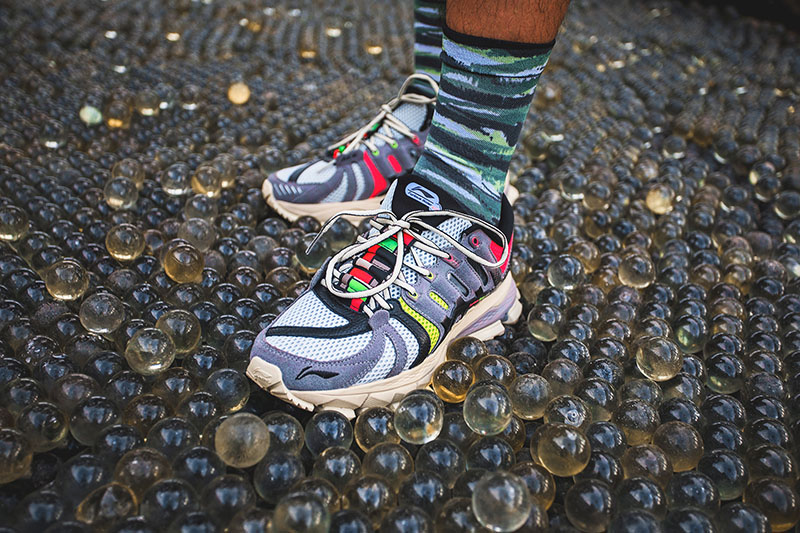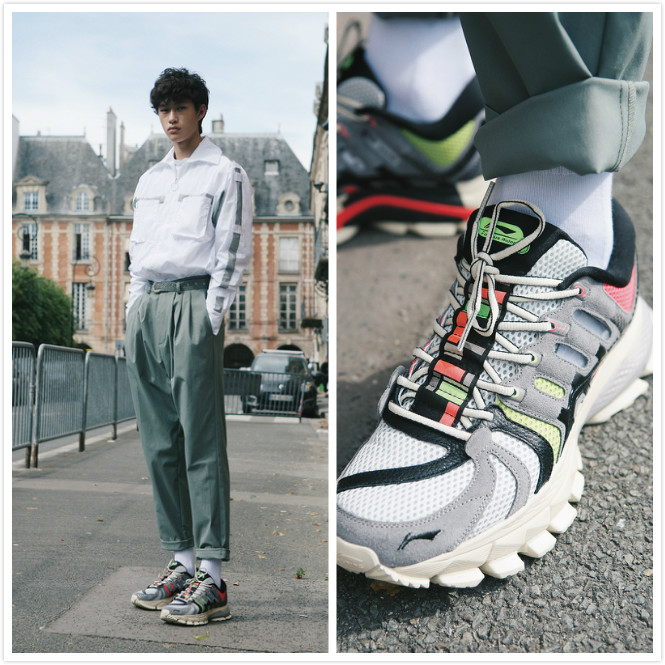 由李宁经典稳定系跑鞋烈骏 4 代为蓝本,将专业跑鞋注入更多时尚前卫的潮流元素。