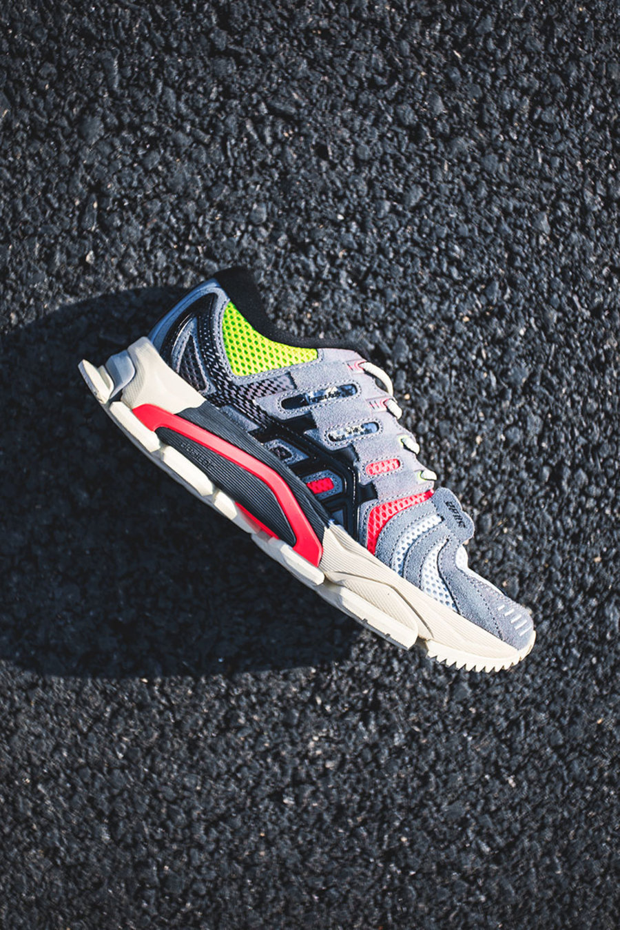 这个灵感来源于马骨骼、肌肉与韧带的设计,不仅营造出灵活充分的鞋身包裹,期间穿插的透明材质印有相应的文字标识,进一步勾勒出鞋身丰富的视觉层次。