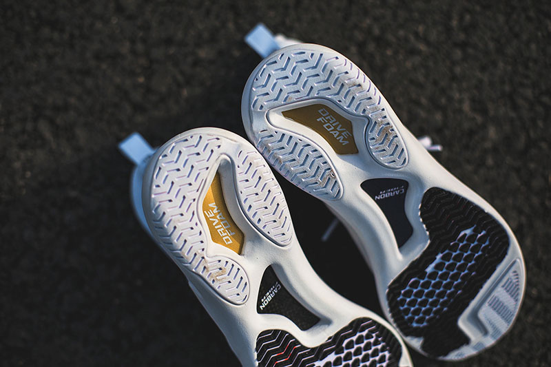 缓震如此强大,抗扭转自然也不能马虎。镂空大底能看到内嵌碳纤维稳定片,保证在高速跑步过程中的稳定性。