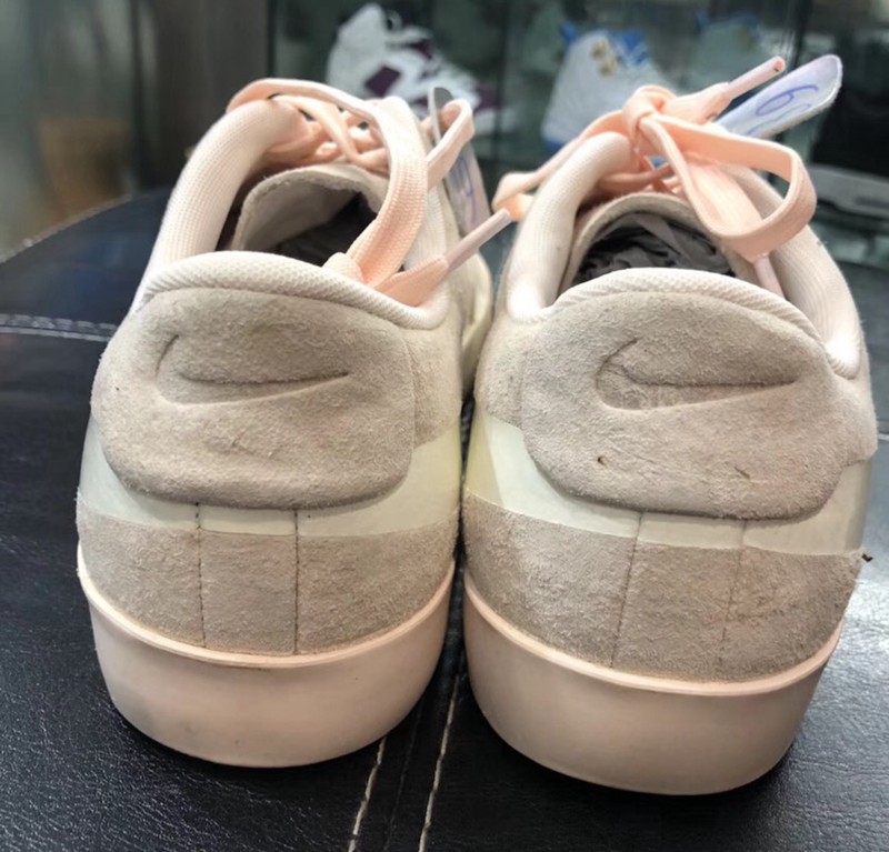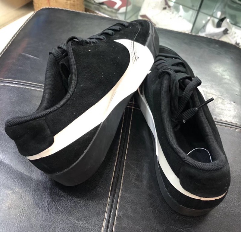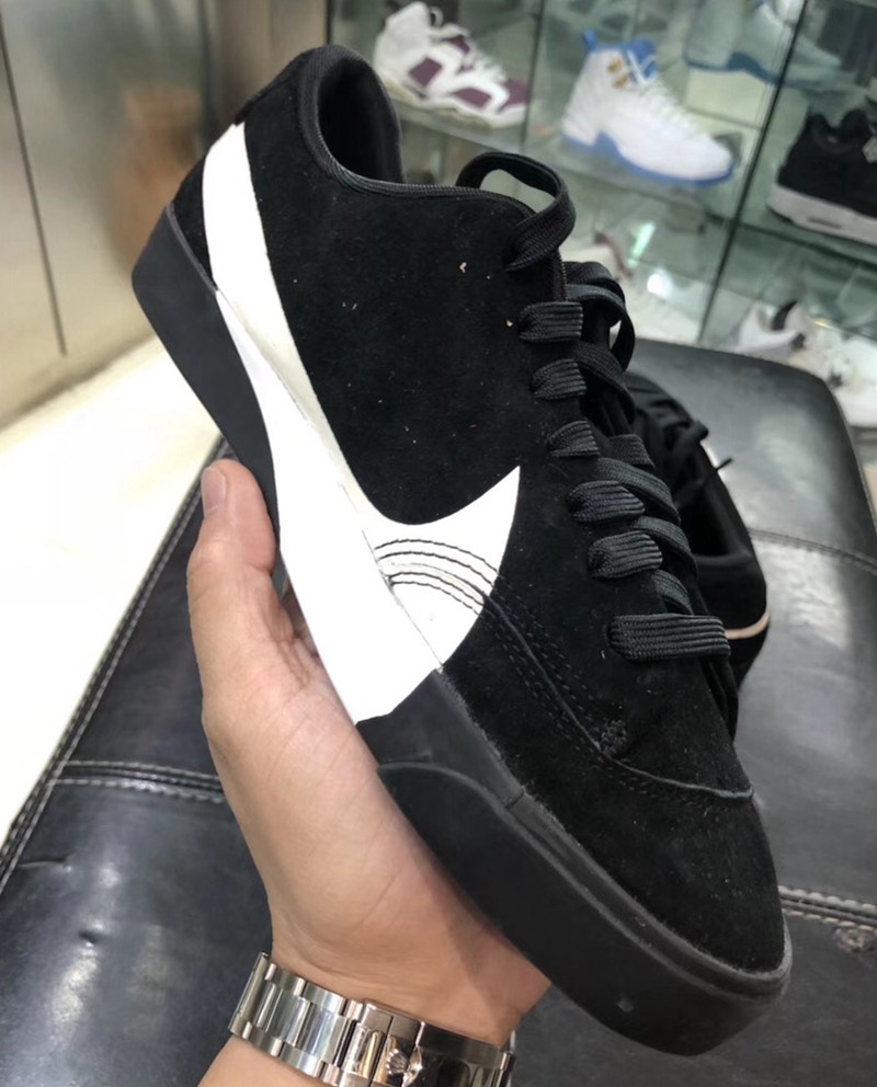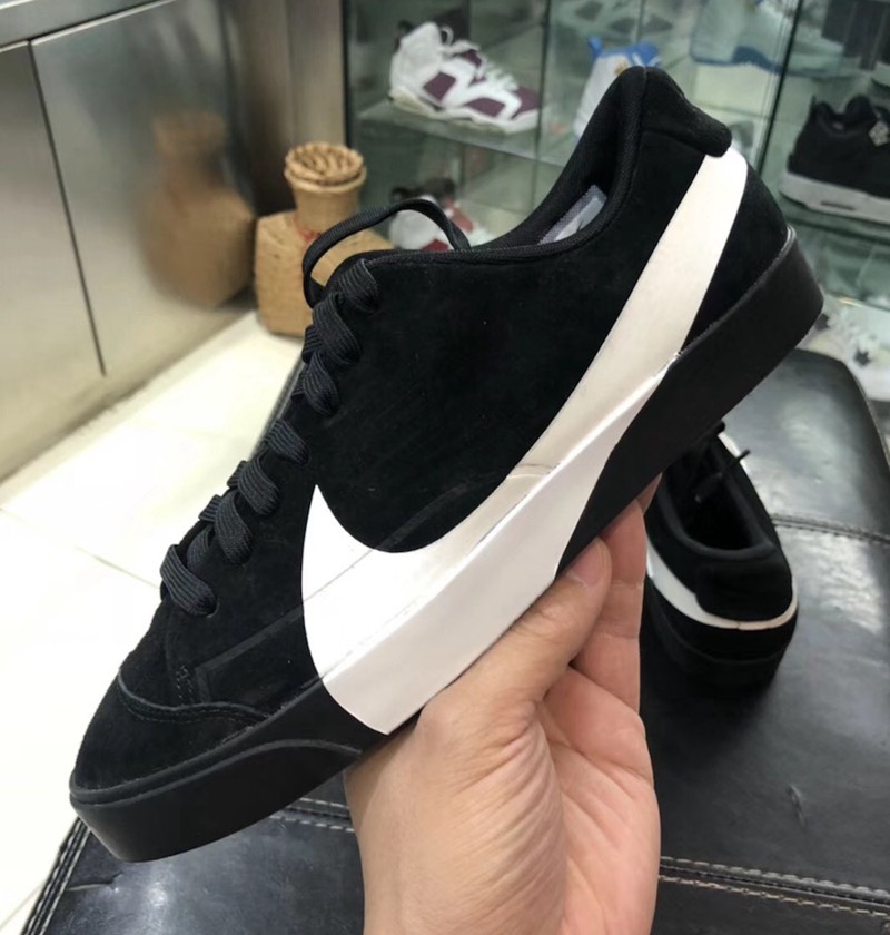 鞋款最为引人注意的是其超大 Swoosh 贯穿整个侧身,直至中底外沿,与 Nike 今年推出的 Vapor Street Flyknit 颇为相似。Blazer 招牌的鞋头保护橡胶改为鞋身材质相同的麂皮,同时鞋头、鞋外侧保护区域以及外底人字纹路均被放大,加上 Swoosh 本身,各种放大后的设计元素造就鞋款极为吸睛的视觉效果!