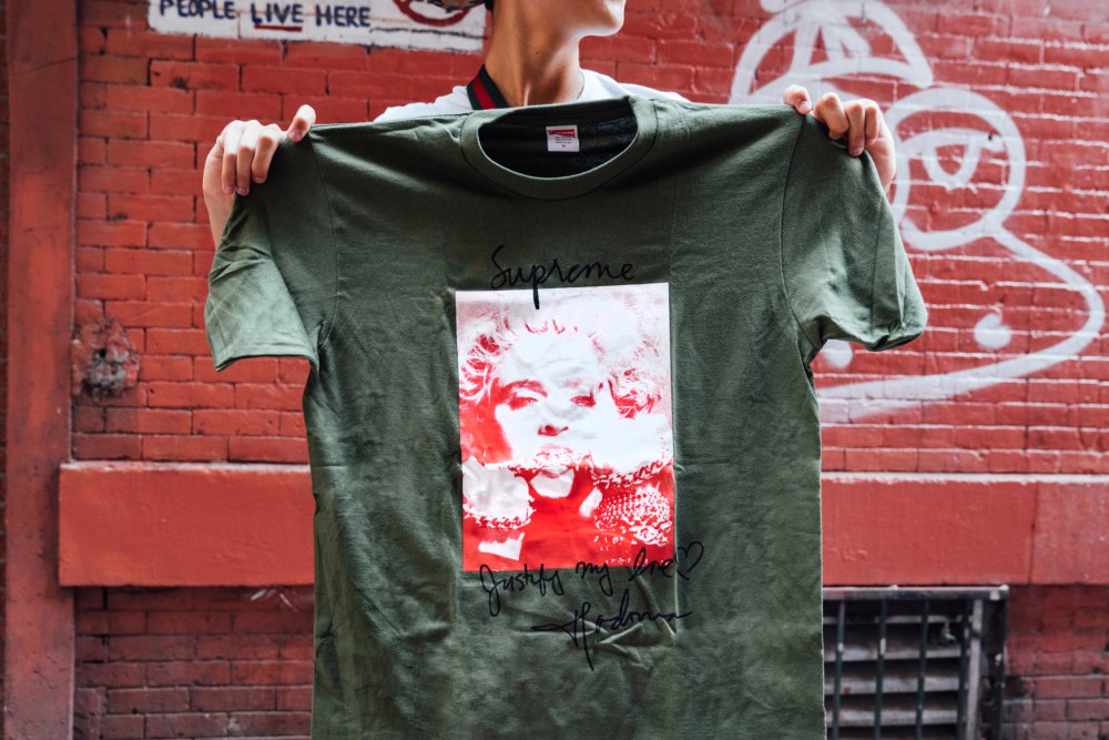 在秋冬系列首周上架的新品中,Supreme 与流行天后 Madonna 合作的 Photo Tee 成为 “终极爆款”,而本周的黑马则是 “SUPREME FUCK YOU” 手势印花的 T-Shirt 与盘子,以及彩色格纹拼接设计的短袖和短裤,同样来自 Mophie 的新款充电手机壳也都是大家争相抢购的对象,而该手机壳更是完美适配 6 代以上所有版本的 IPhone。