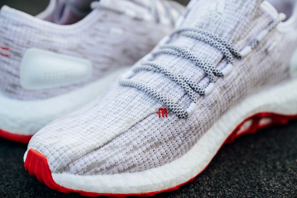 该系列的配色灵感苹果的红色,如今也到了苹果丰收的季节。系列包含 Pure Boost DPR 与 Pure Boost 两双鞋款,整体都以灰白相间的花纹为主调,搭载白色全掌 Boost 缓震与红色外底,活力感十足体现。