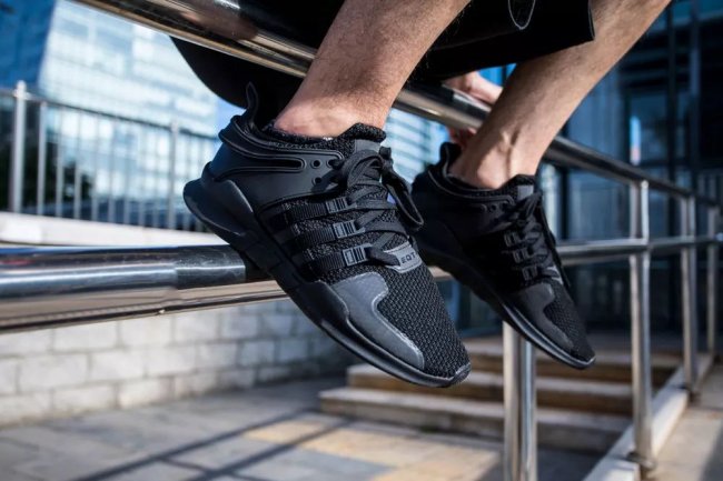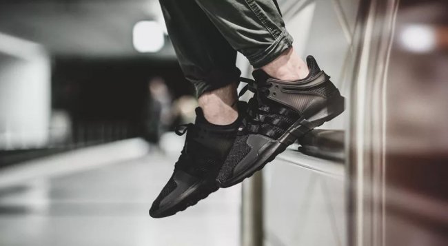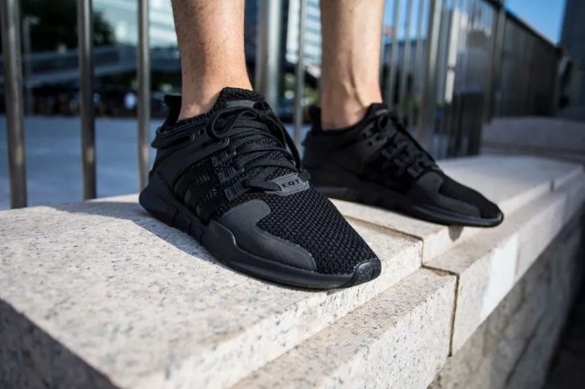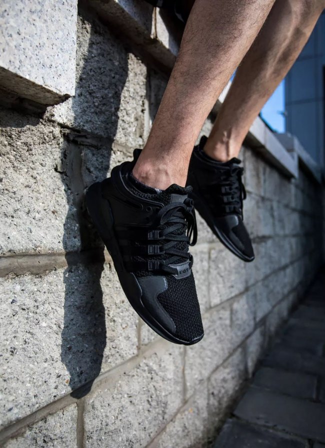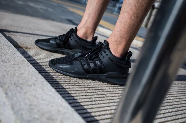 上脚一双纯黑色 adidas Originals EQT Support ADV 鞋款,即便是简约的黑白主题也能轻松穿出帅气高街。