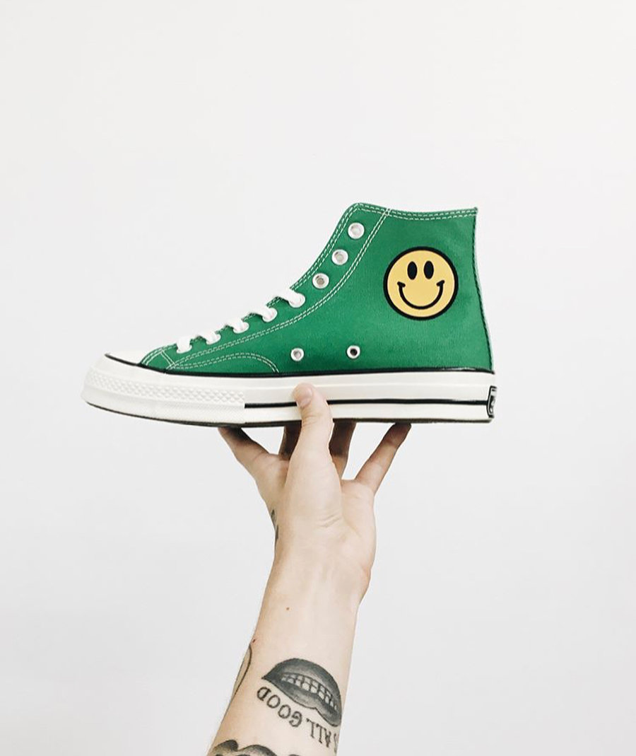 詹姆斯上脚的 Chinatown Market 恶搞联名,相信有不少玩家记忆犹新。近日,Chinatown Market 再次以这种的方式推出了一双新“联名”,就是图中的这双 BAPE x Chuck 70。遗憾的是,此次依旧为不会市售的 1 of 1 版本,玩家们也只能选择过过眼瘾了。