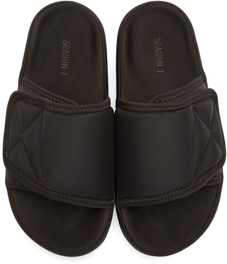 今天这双 Yeezy 拖鞋就迎来发售,只不过率先登场的是深棕色,而不是侃爷上脚的灰色版本,从图片中能清晰看到这双拖鞋的设计,整体风格非常简约高街,宽大的鞋面加入魔术贴设计,中底非常厚实,上脚的舒适度应该有所保障,刺绣的 “SEASON 7” 清晰可见,高街风十足。