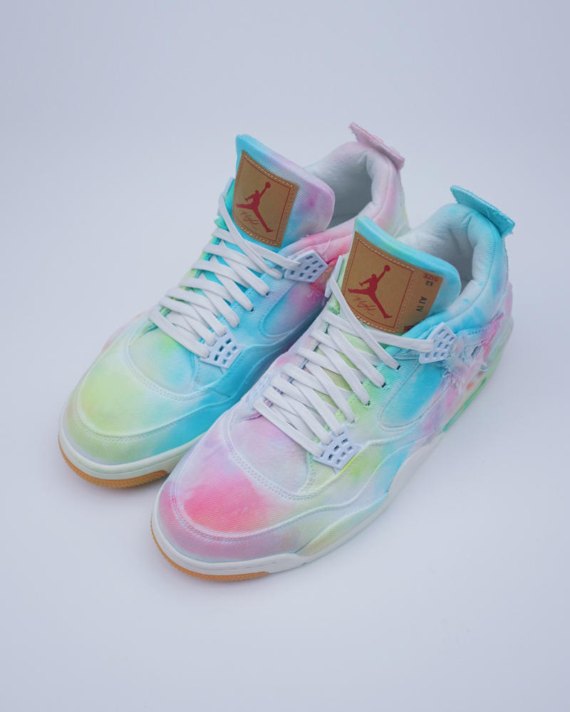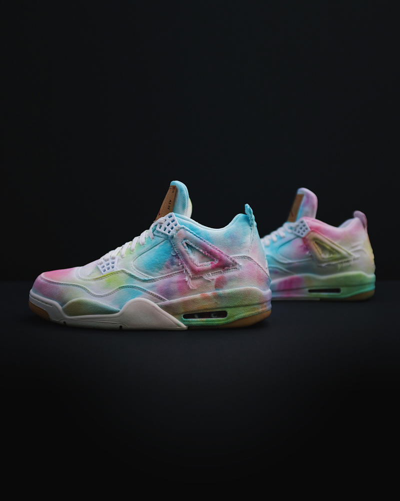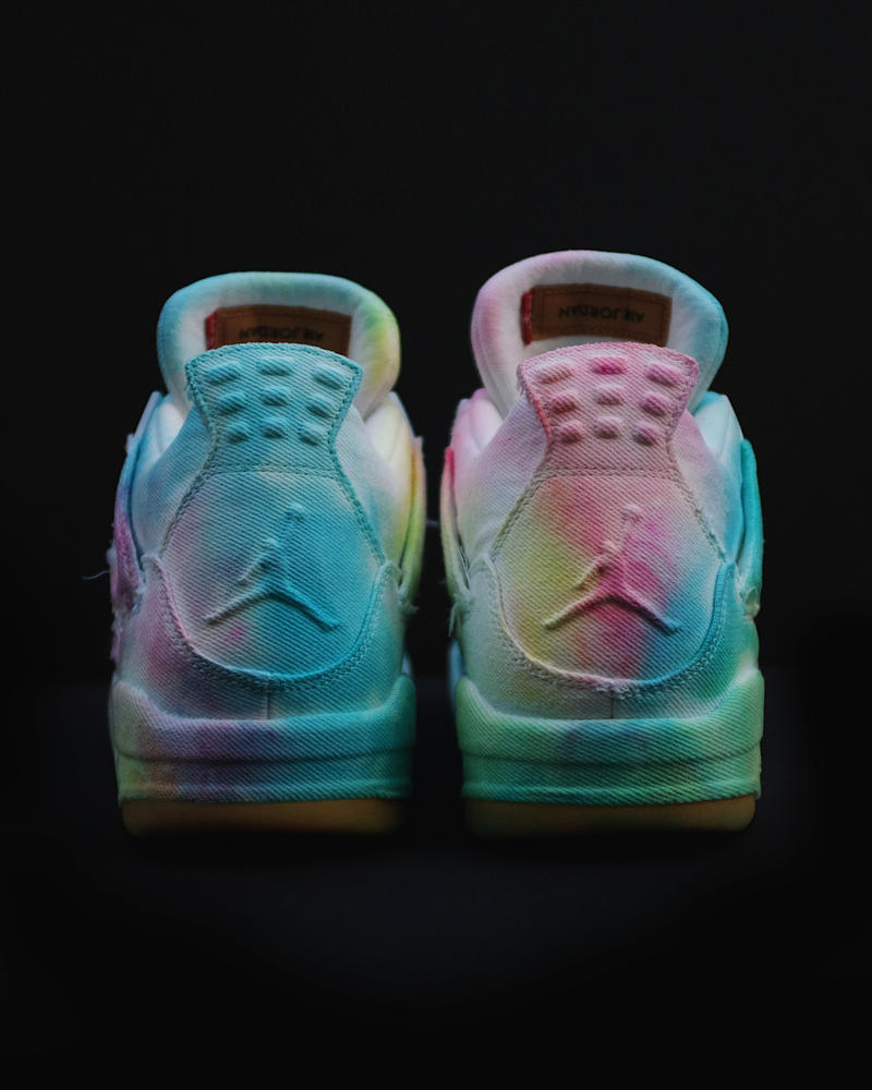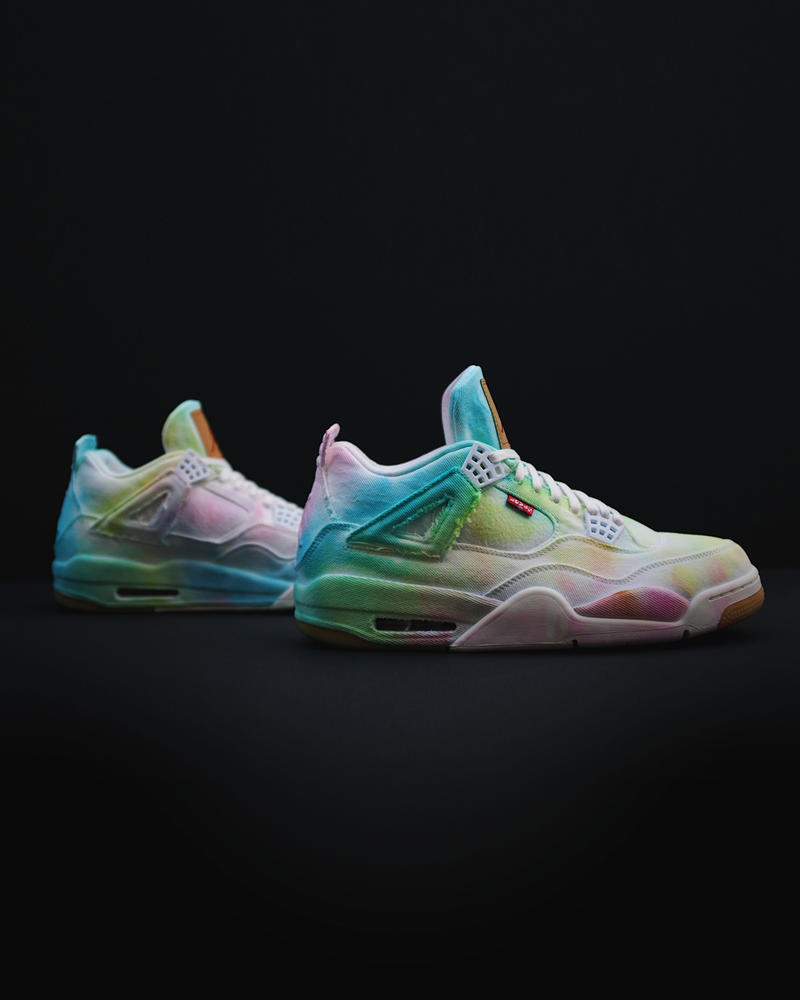 在 Levis x Air Jordan 4 发售后的几个月中,因其可塑性超高的纯白色的牛仔鞋面,所以这双鞋也被世界各地的客制大神们重点关照。而今天我们带来了一双由 @Larry Luk 扎染客制的 Levis x Air Jordan 4。