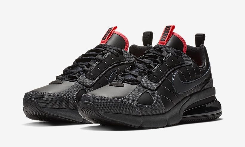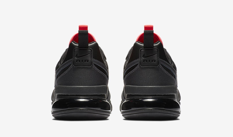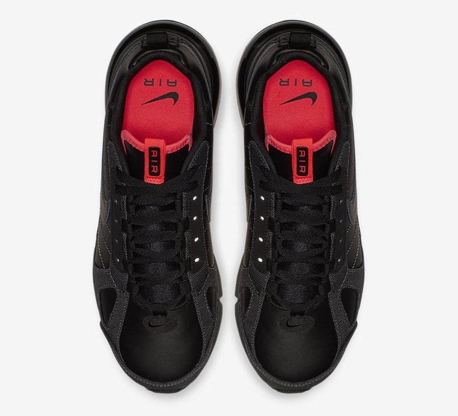 黑色版本以黑色为主调,仅在鞋舌领口处使用红色点缀,后跟部位改成复古风格的 Nike Air 标志。