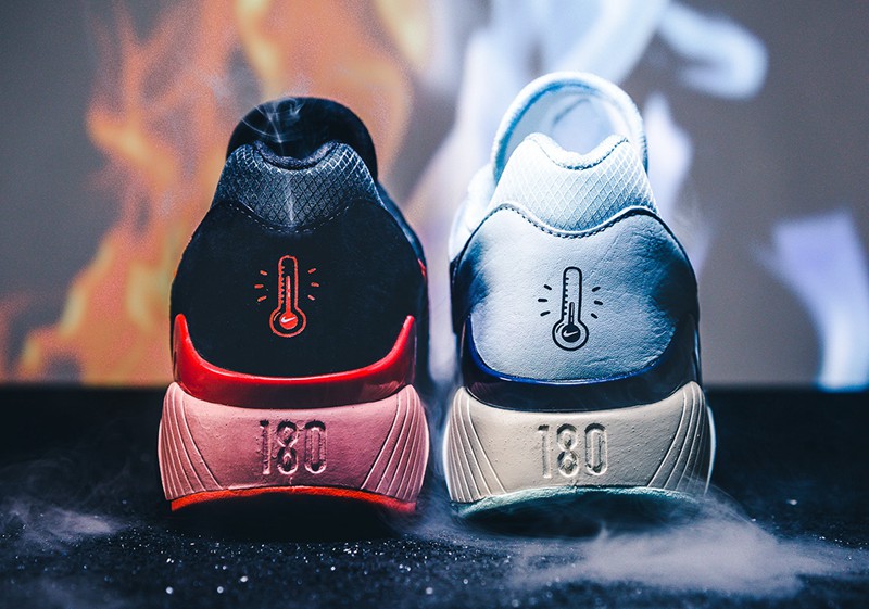鞋款套装灵感来自自然二元论。任何事物均具有两面性,就像球鞋的热度,或是比赛的胜负。两双球鞋不仅以寒冰与烈火之名体现出此自然之理,配色方案也是非常优秀!
