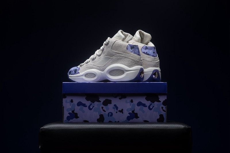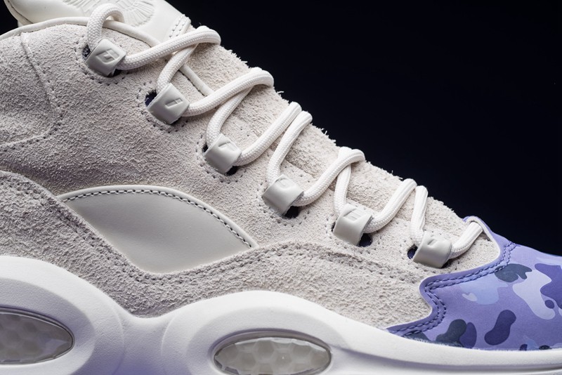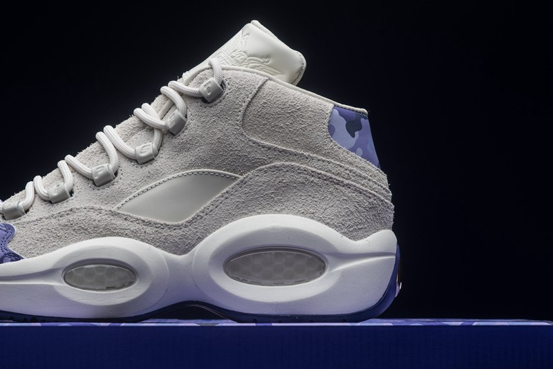 为致敬 Killa Cam 在说唱界的地位,Reebok 近日发售了一双全新的 Question Mid Cam'ron 鞋款。鞋面以浅灰色翻毛皮打造,并将来源于 Cam'ron 个人专辑 Purple Haze 封面的紫色迷彩点缀于鞋头与后鞋领,同时采用了相同的迷彩印刷鞋盒。