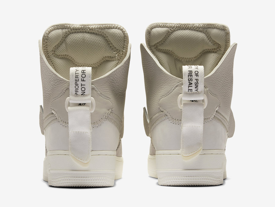 共发售黑、白、灰色三款配色,鞋款在 Air Force 1 High 经典造型的基础上,采用近期最火热的解构理念重塑。将 AF1 Hi 标志性的脚踝绑带移至后跟鞋提,细节注入 PSNY、WNL (We Need Leaders) 等文字,既传承经典,又拥有不俗的个性表达。