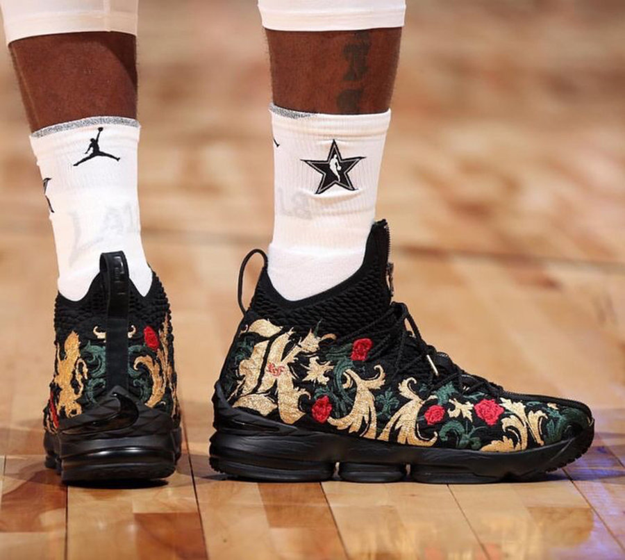 当然这双鞋的价格如此之高除了超高颜值,和难度较高的大面积刺绣设计外,詹姆斯更是多次表达对这双球鞋的喜爱,曾在全明星赛中亲自上脚。