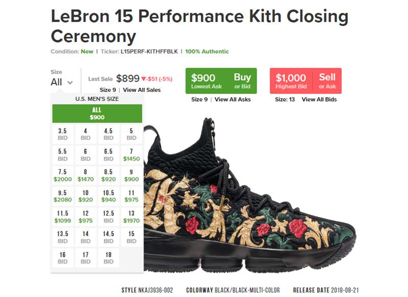 而这双 KITH x LeBron 15 货量更是极其稀少,US 9.5 尺码更是高达 $2080 美元,其抢手程度可见一斑。