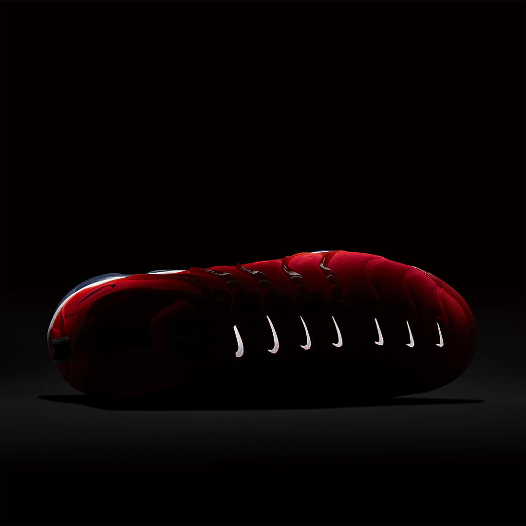 全新配色为大红色鞋面搭配黑灰双色鞋底,值得一提的是鞋面上七个 3M 材质的 Mini Swoosh,塑造亮眼又不失经典的造型,同时在夜晚的运动时提供安全保障。。