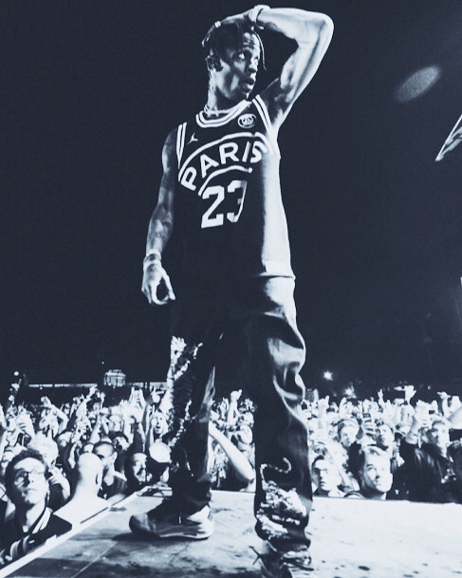 除此之外,人气说唱歌手 Travis Scott 在昨晚法国 Cabaret Vert 音乐节现场上身了一件从未曝光过的巴黎圣日耳曼联名 Jordan 23 号球衣!