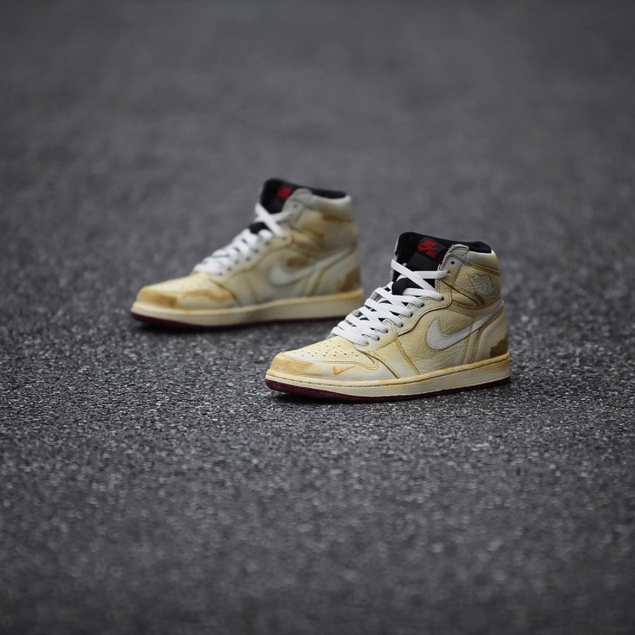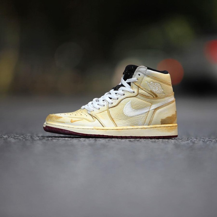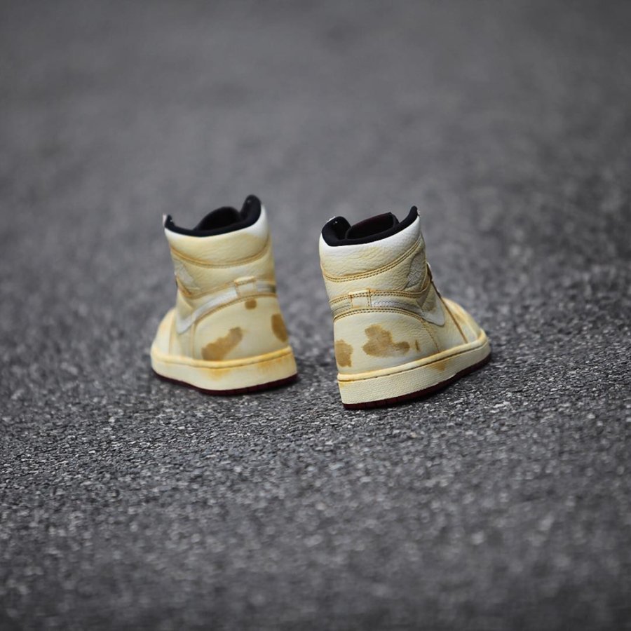 这双 Nigel Sylvester x Air Jordan 1 以 Nigel 本人平日刻苦磨砺车技造成的鞋款磨损为灵感,鞋头与后跟的大面积磨损源自 “脚刹” 留下的磨痕,因为 Nigel 表示他的 BMX 小轮车根本没有刹车!