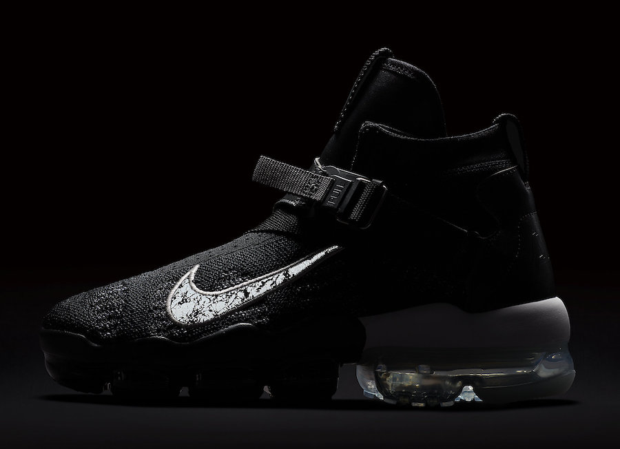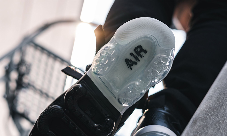不仅有着黑白双色拼接的 VaporMax 大底,这款新鞋型从头到尾都贯彻了 “机能” 二字,颇具都市忍者的气质。