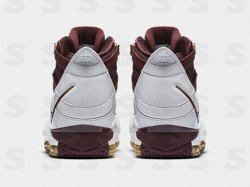鞋身采用酒红色与白色搭配方案,鞋带扣以金属材质的金色示人,中底标有 “ZOOM” 的金色区域象征着当年 LeBron 系列常用的 Max Zoom 气垫。个人专属细节体现在鞋头金属部分、鞋跟内侧以及鞋垫均带有的詹姆斯签名 Logo,同时鞋舌上霸气的狮王 Logo 彰显詹皇本色,鞋头内侧刺绣有 “CTK” 的字样表明了鞋款身份!
