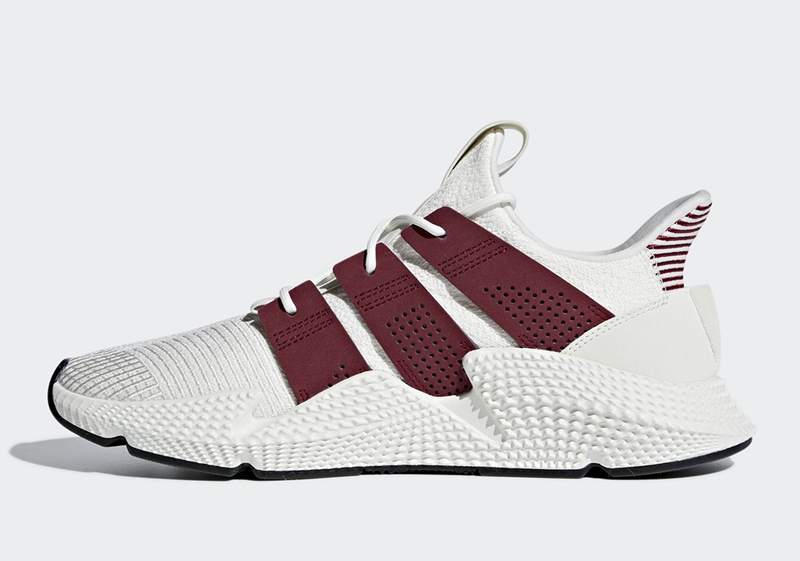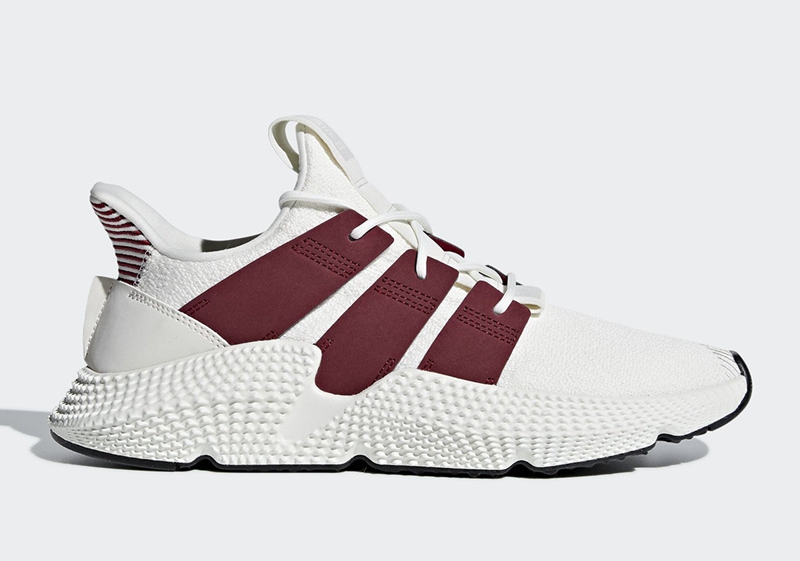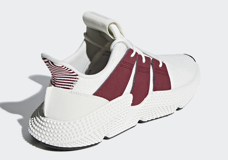 眼前这款全新配色一改 adidas Prophere 熟悉的野性奔放,改由白色 Primeknit 织物鞋面与魔力红麂皮三线示人,清爽又醒目的视觉呈现,上脚效果极为帅气。