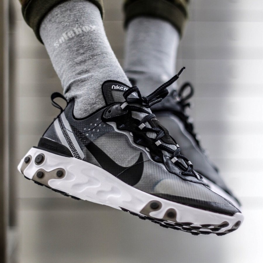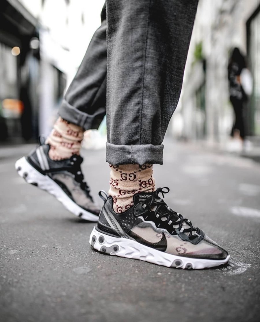 虽然黑色的鞋面不如白色通透,但同样具有一定的透明效果,而且更加百搭。React Element 87 鞋型新配色还在不断推出,作为元祖配色,黑色将会具有独特地位,趁还能买到不妨收一双。