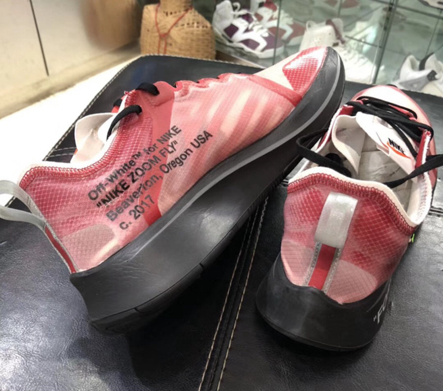OFF-WHITE x Zoom Fly 目前已经推出白色蝉翼材质的 SP 版本和黑、橙两款编织鞋面版本。近日又有一款红色的 Sample 版本曝光。