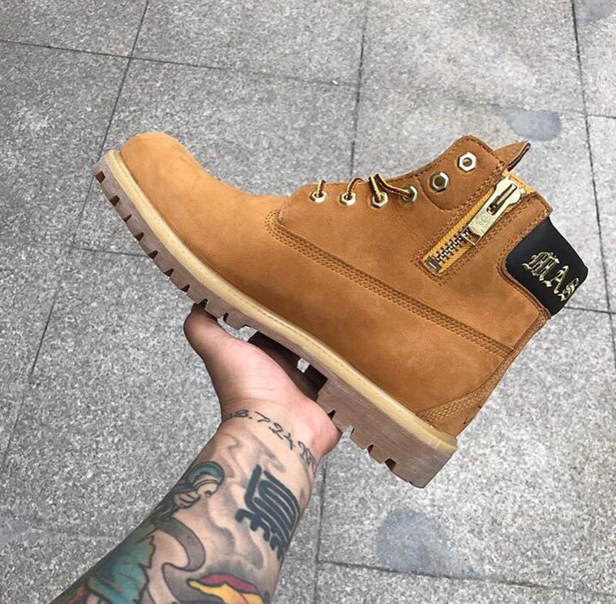 在图片中可以看到,这款鞋在鞋帮处添加了拉链的元素,鞋舌以及后跟处分别印有 MMJ 标志性的骷髅 Logo,便于穿脱的同时更是彰显联名身份。后跟处以刺绣的手法将 Mastermind Japan 的字样表现。共有两款配色释出,除了经典的大黄靴外,还将包含一款 “大黑靴”。