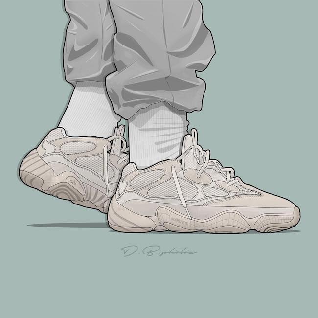 ▼ 用扎实的美术功底,呈现 Yeezy 500&700 的最美上脚图~