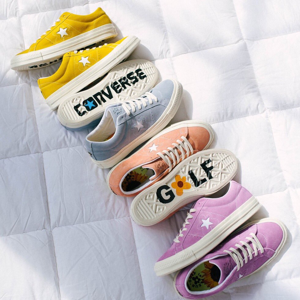 去年联名合作的 Golf le Fleur x Converse One Star 系列人气不俗,因为可爱的花朵设计被大家亲切的称为小花联名,首发配色如今都已经涨到 ¥2700 左右,今年的全新配色同样活泼鲜明,连带着 One Star 鞋款都受到了更多人的关注。