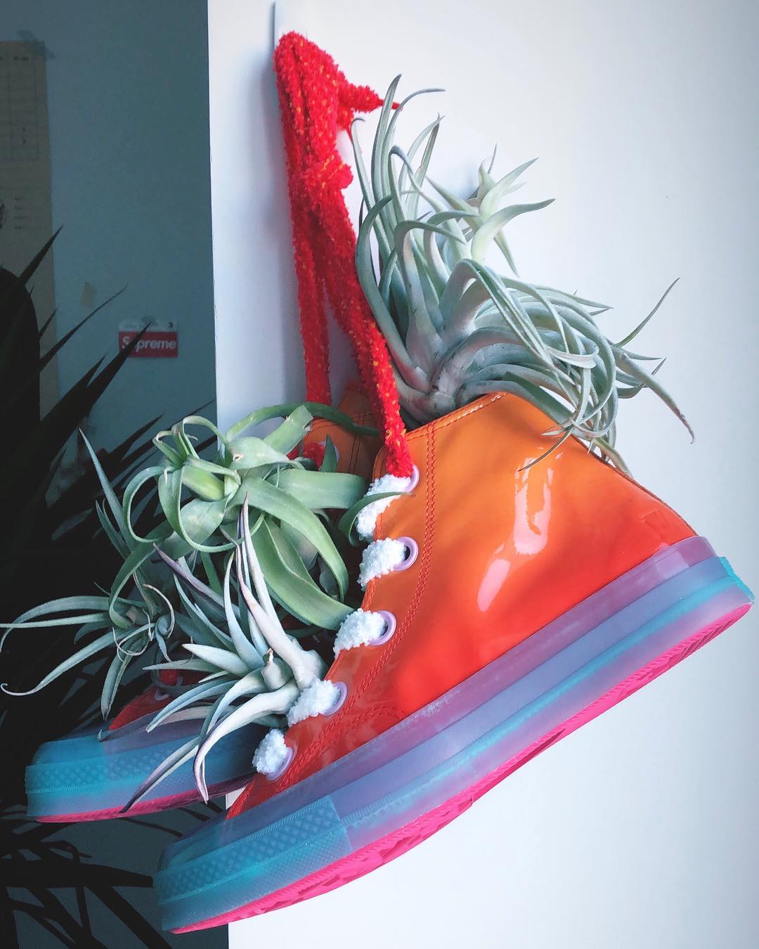 在 OFF-WHITE 联名之后,大家都意识到水晶底的 Converse 简直颜值爆表,随后知名设计师 JW Anderson 就带来了此次联名,这回直接变成了果冻底,再加上色彩艳丽的漆皮鞋面,看到它们的第一眼就知道要火,没在起飞之前入手橙色实在是让小编伤心,女码比男码还有贵了不少。