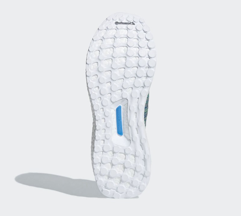 蓝绿混色款的鞋舌与后跟提环均施以天蓝色,搭配浅灰色 TPU 后跟,并辅以白色 Boost 中底与外底,整体配色清新怡人;而红蓝黑混色款则以黑色压胶挡泥板结合灰黑色后跟,侧面三道杠也较为明显,蓝绿色点缀于两处提环,最后以常规的白 Boost + 黑马牌外底收尾。
