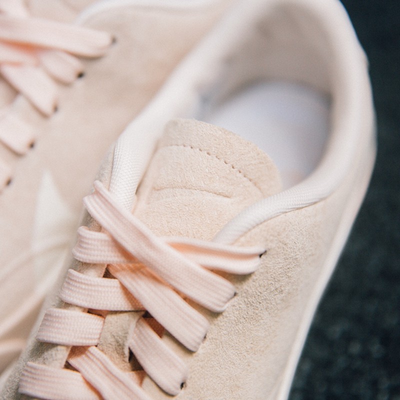 而裸粉配色的 Swoosh 就没那么明显了,但其颜色所带有的清新优雅气质,依旧可以俘获不少小姐姐的心!