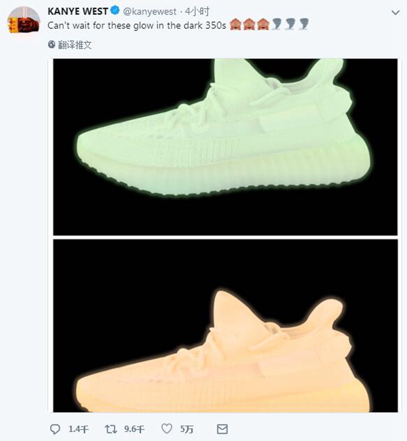 侃爷 Twitter 晒图时配文称已经迫不及待了,暗示这两款夜光 Yeezy 可能很快就会与大家见面!同时有消息称,或将于 12 月发售,绝对是继 Yeezy 秋冬补货之后的又一个好消息!