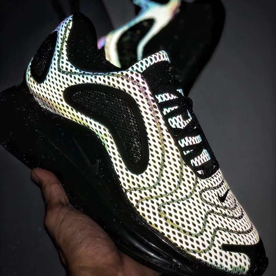 从实物中可以看出,鞋款搭载全掌 Air Max 气垫,后跟处的鞋底构造方式与 Air Max 270 有几分相似之处,鞋面设计有 Air Max 97 和 98 的影子,可以说是一个集 Air Max 家族之所长于一体的精品。目前曝光的配色就有银子弹和全 3M 反光配色,科幻感十分强烈。