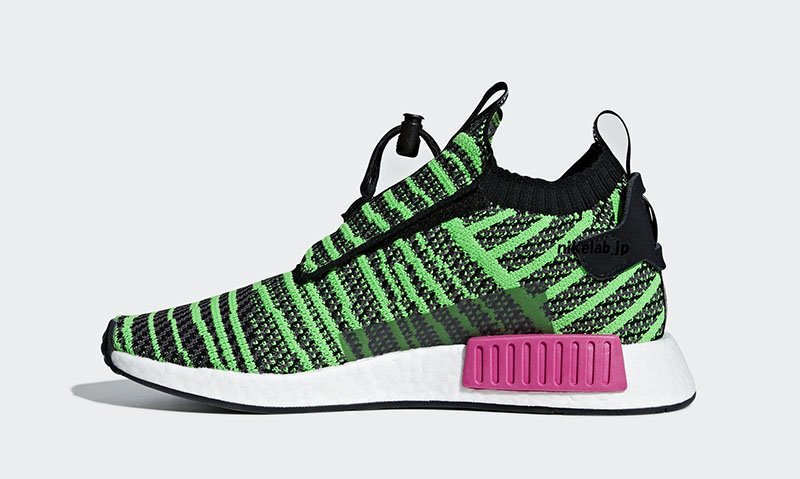 看惯了那么多纯色的 NMD,这双活力动感的 “虎皮尖椒” 想必上脚效果更为吸睛,后跟模块辅以粉红点缀更是点睛之笔,为日常搭配提供更多丰富的创意可能。