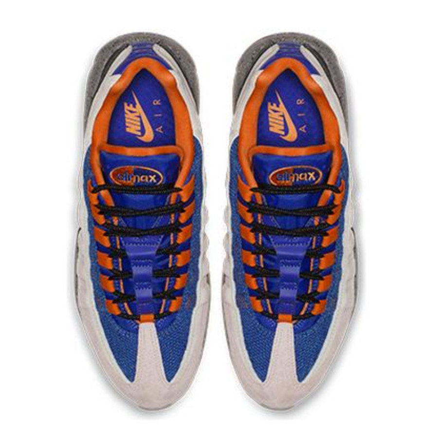 鞋面上部为经典的蓝橙双色,中下部为卡其色皮调革打造,由于使用了几种不同皮料和颜色,在 Air Max 95 上展现出了更强的层次感。