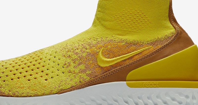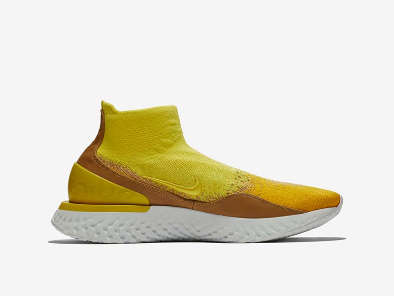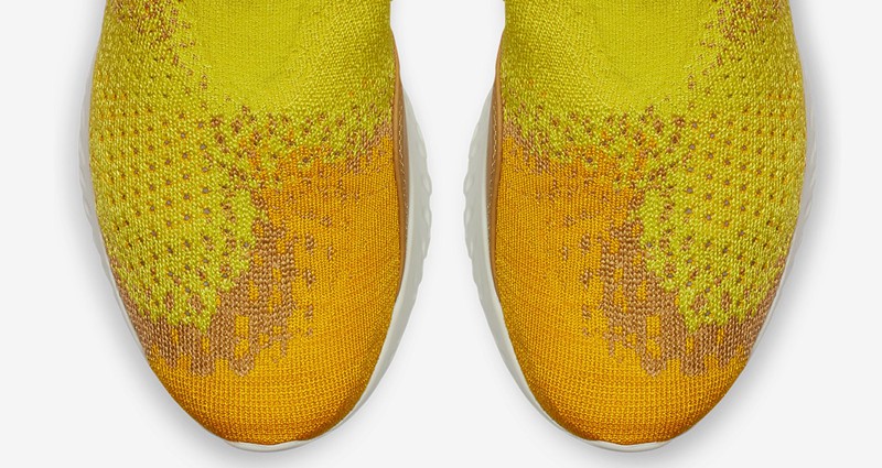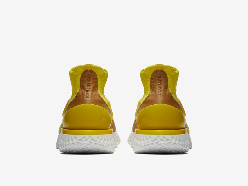 之前我们报道的 Rise React Flyknit 无鞋带袜套版本跑鞋,此双全黄配色将于明天一早在国内正式发售!