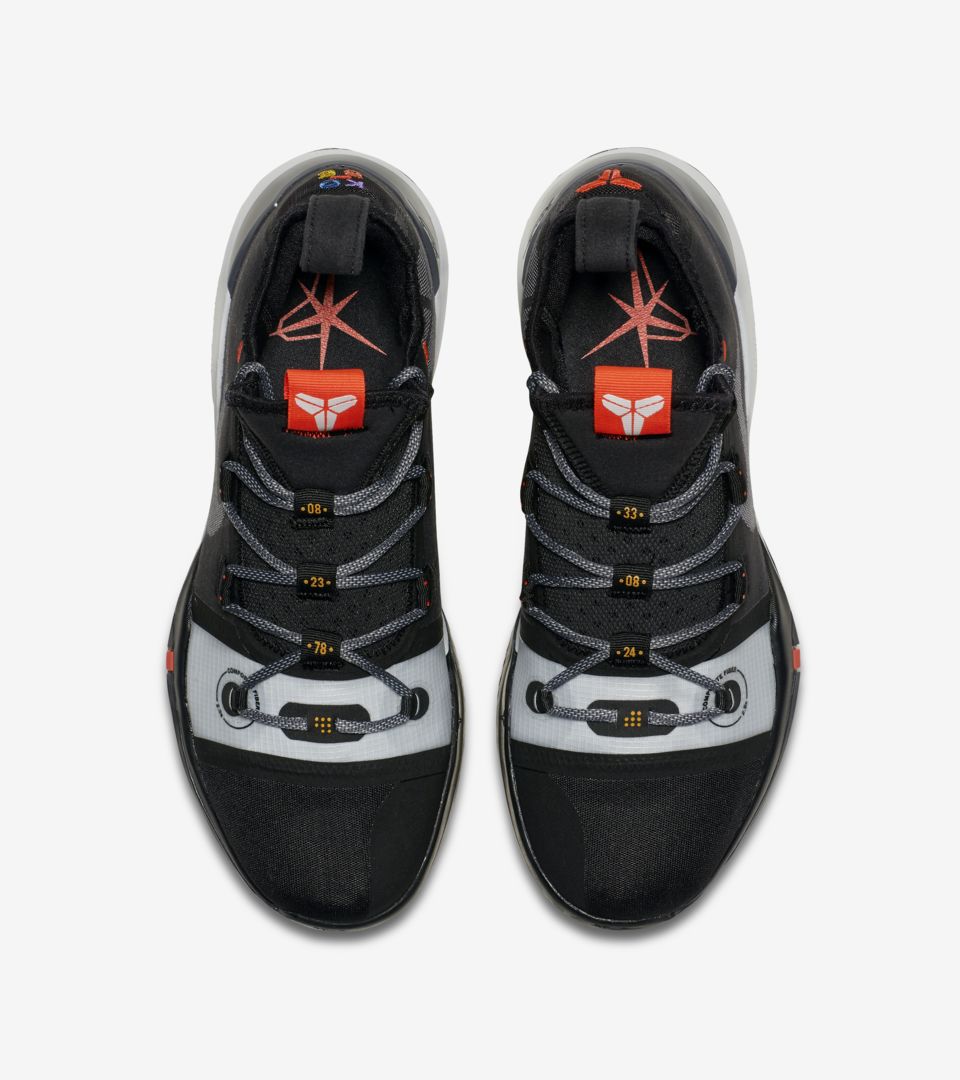 整体采用黑银配色示人,低帮鞋身与一体化的鞋舌营造,速度感极强!鞋带固定孔上,右脚印有 “08” “23” “78” 三个数字,标明科比的出生年月日,左脚 “33” “08” “24” 则分别代表科比在高中时期、NBA 早期和后期的球衣号码。