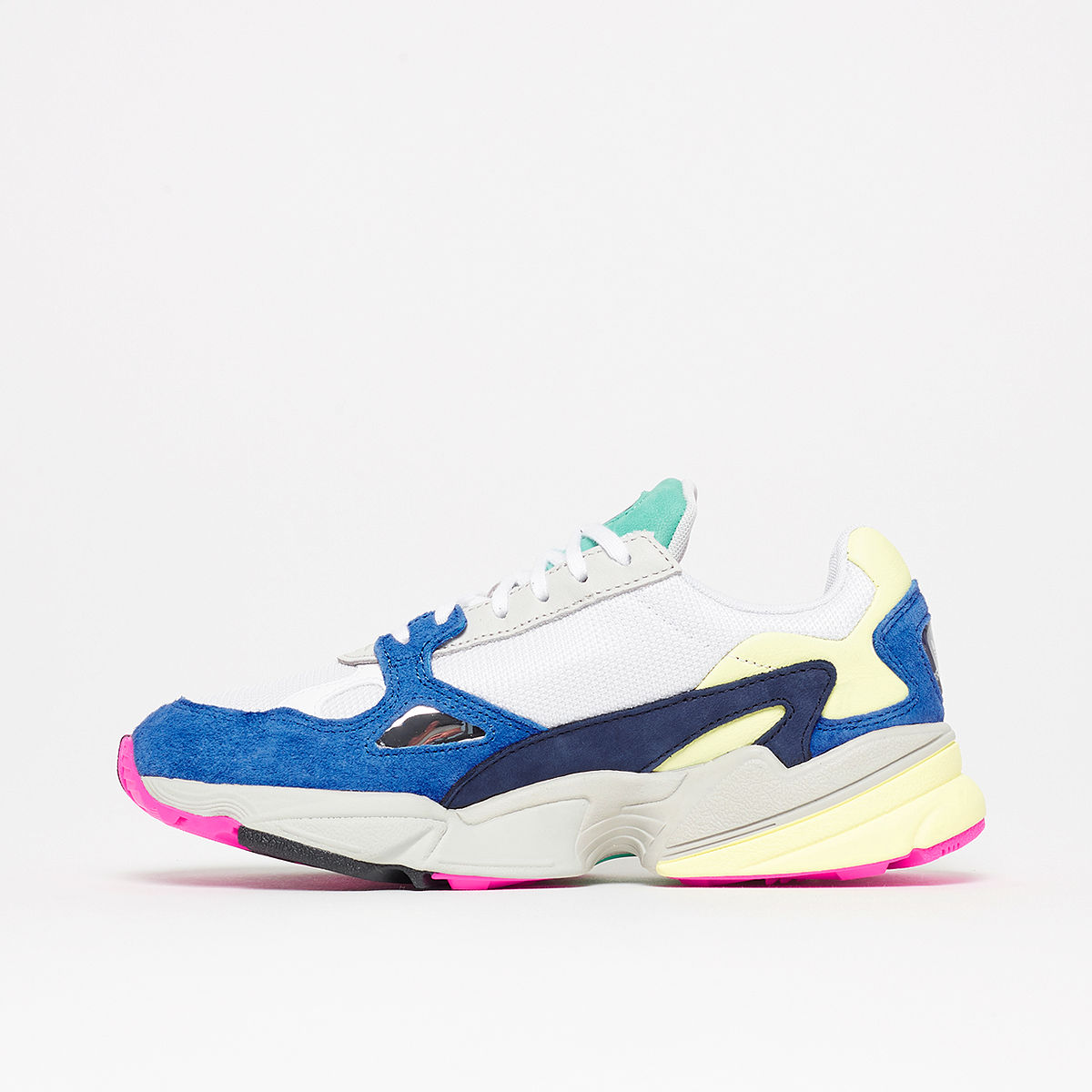 又一款妹子福利登场! 这双 adidas Originals Falcon 白蓝配色既有艳丽的色调搭配,又有米黄色的做旧气质,老爹鞋的独特魅力彰显无遗! 将于 9 月初正式发售,上脚带来的视觉层次感丰富,Falcon 独特的线条勾勒出辨识度极高的个性姿态,在秋冬的街头定能点亮你的整体穿搭。 货号:BB9174