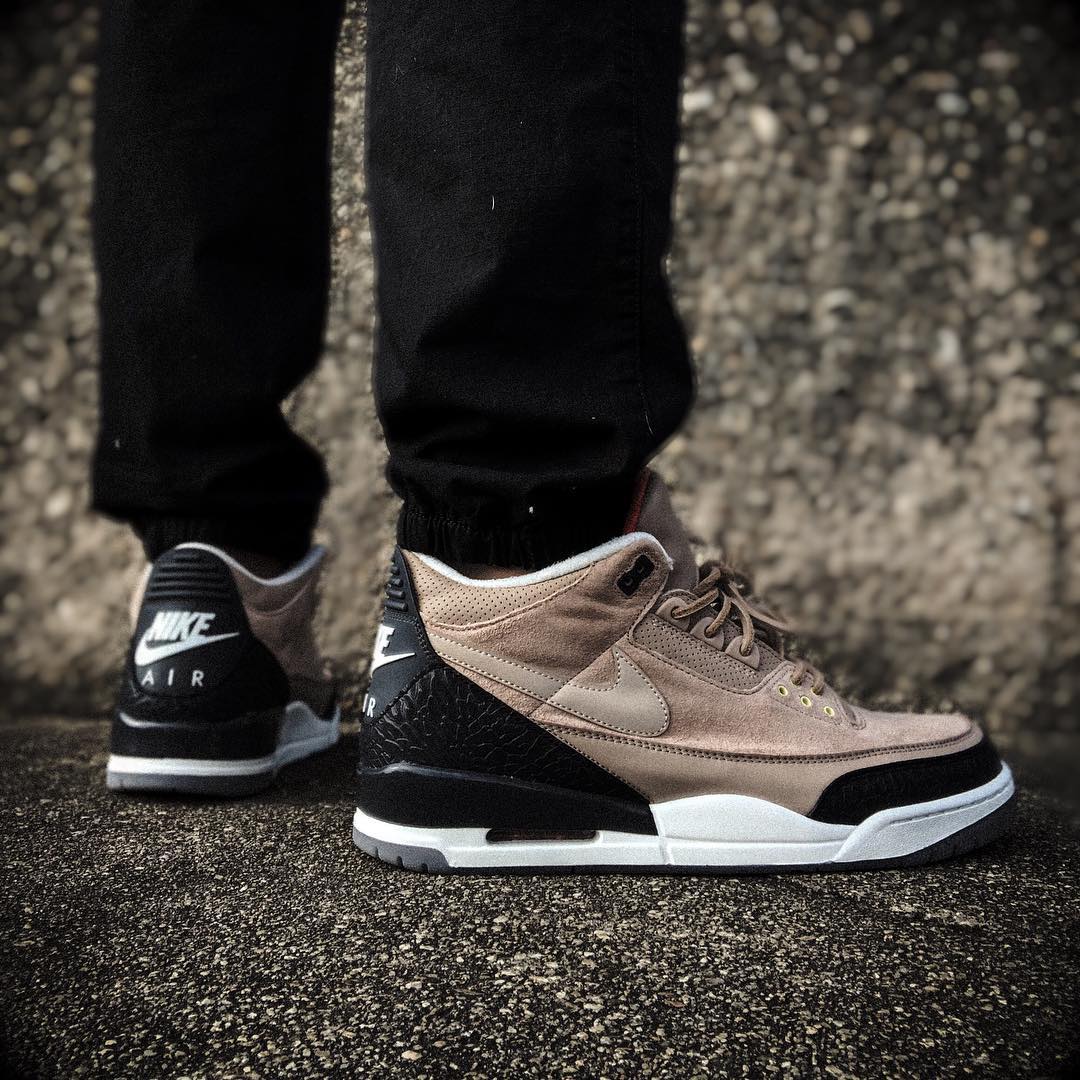 今年二月份,贾老板在超级碗表演中亲自上脚,并一舞成名的球鞋 Air Jordan 3 “JTH”,着实引起球鞋圈的一时轰动。当时我们并不知道这双带钩子的 Air Jordan 3 是什么来头,导致 “白水泥” 配色当时的市场价直逼 ¥7000 元。而近日一双之作更精良的卡其色麂皮款也发售,上脚效果不俗,也让这款配色成为少量能高于原价的 Air Jordan 3。