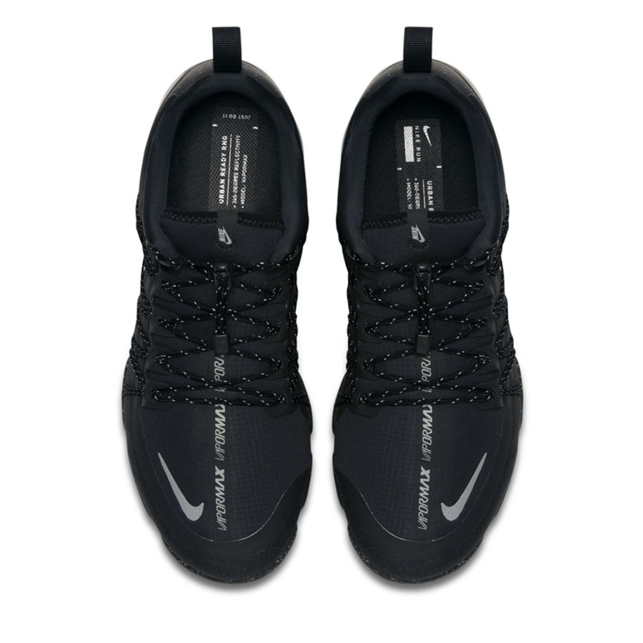 Swoosh Logo 和绑带系统都带有反光效果,中底及后跟也有反光材质喷溅,保证夜间穿着安全性。中底为带有发泡材质垫层的 VaporMax 气垫,带来柔软澎湃的脚感。
